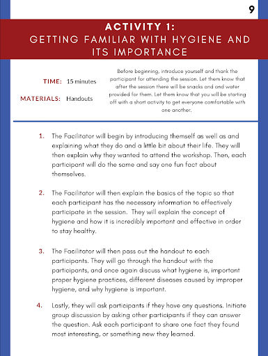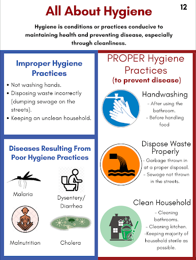 In collaboration with Leadership Initatives, HYPE planned and executed a public health campaign in Bauchi State, Nigeria, to help promote healthy sanitation practices. With limited access to clean water, sanitation infrastructure, or education on proper hygienic practices, HYPE’s mission was to disseminate resources that made public health information more readily available to villages in Bauchi State. HYPE’s leaders had the opportunity to connect directly with Nigerian liaisons that provided technical input on the curation of the resources, ensuring that the terminology used would be understood by our intended audience. In addition, through a combination of hands-on learning and engaging presentation, we sought to optimize educational retention as a means to facilitate a long-term shift to proper sanitation. By instilling these values, especially in the youth, HYPE was able to better prepare these civilians to combat diseases that arise from poor hygienic conditions. Below are pages excerpted from the materials we prepared.